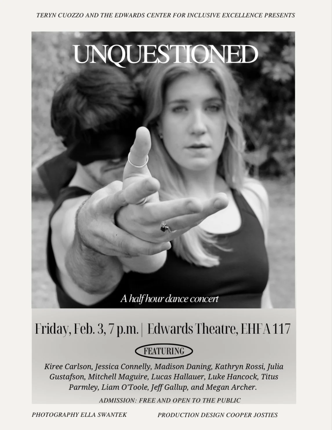 Unquestioned: a Half Hour Dance Concert, was a year long research project and performance in culmination with my research fellowship on data performance and its impact on viewers.